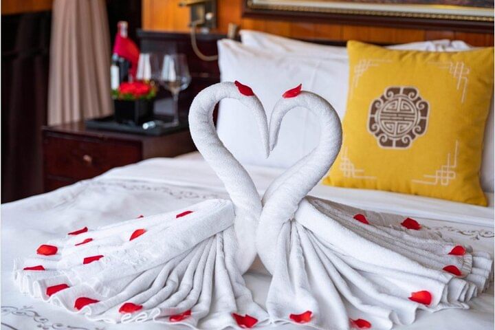 See the breathtaking wonders of Halong Bay, a UNESCO World Heritage site, with a beautiful 2-day trip. Enjoy the peace and quiet of the majestic limestone islands and emerald waters as you unwind on our elegantly furnished ship, where each accommodation has first-rate amenities and stunning views.