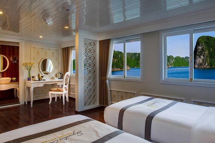 While Halong Bay is famous for its breathtaking scenery, it can often be crowded with tourists. For a more tranquil and authentic experience, embark on this 2-day Bai Tu Long Bay Luxury Cruise, a journey that reveals the untouched beauty of Halong’s quieter neighbor. Sail through emerald waters and dramatic limestone cliffs, visit the peaceful Vung Vieng Floating Fishing Village and Thien Canh Son Cave, and learn about local life at the Pearl Farm. Onboard, enjoy elegant comforts with air-conditioned ensuite cabins, full-course meals, and relaxing activities such as Tai Chi at sunrise and a Vietnamese cooking class. With kayaking, swimming, and all entrance fees included, this cruise offers a perfect blend of adventure, culture, and serenity—an unforgettable way to experience the best of northern Vietnam beyond the crowds.